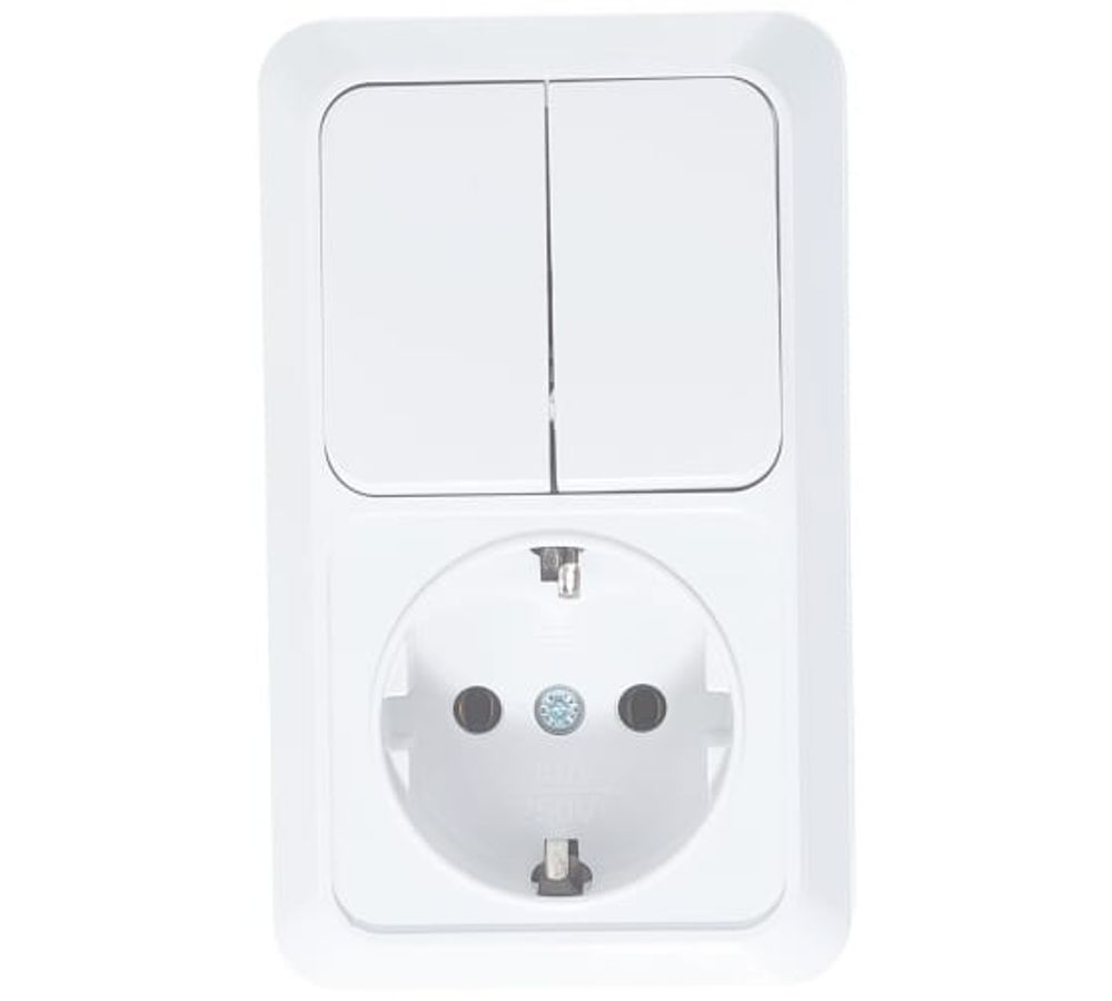 Вертикальный блок: двухклавишный выключатель + розетка с заземлением, белый UNIVersal Олимп О0040
