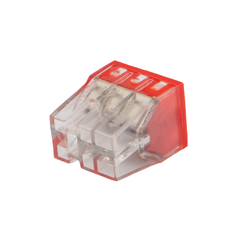 Компактный прозрачный корпус удобен для контроля соединения, а яркая цветовая разметка способствует визуальному различию клемм по количеству проводников.