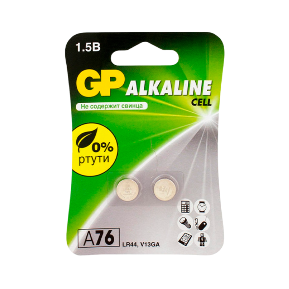 Элемент питания GP Alkaline LR44 BL2 A76F-2CRU2 (1/10/96)