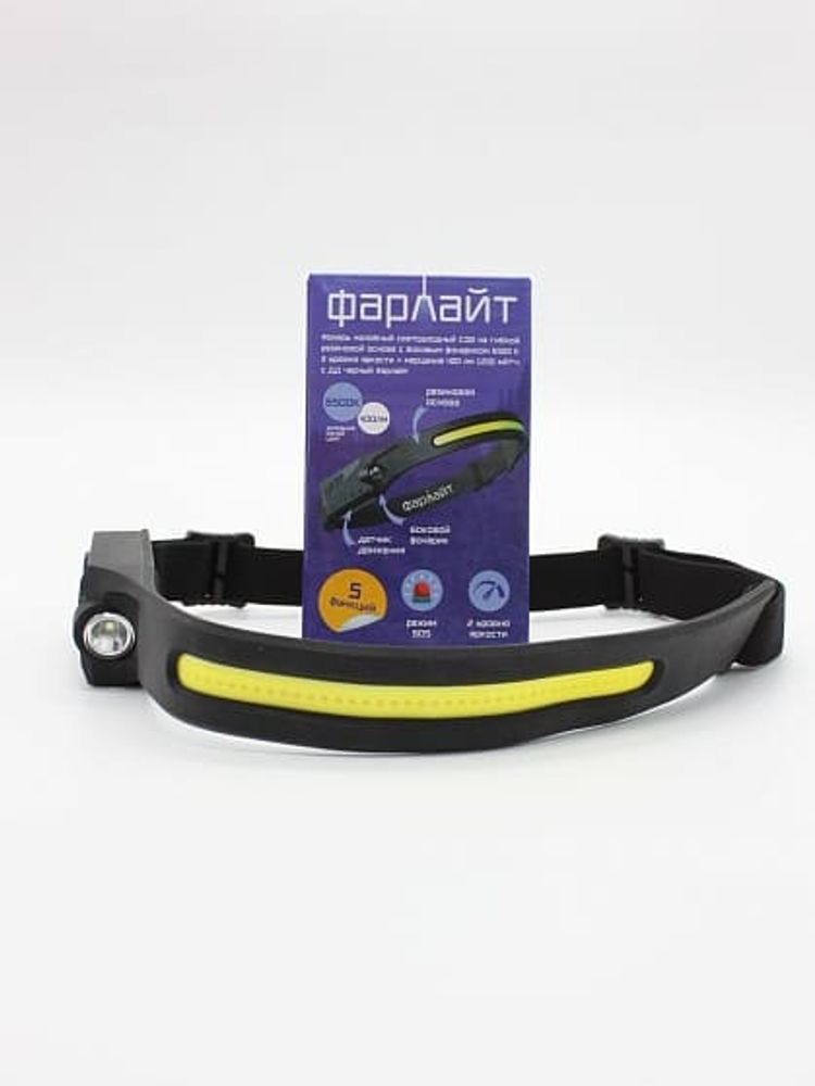 Фонарь налобный светодиодный COB 6500К,2 уровня яркости 400 лм 1200 мА*ч с ДД черный Фарлайт (1/12