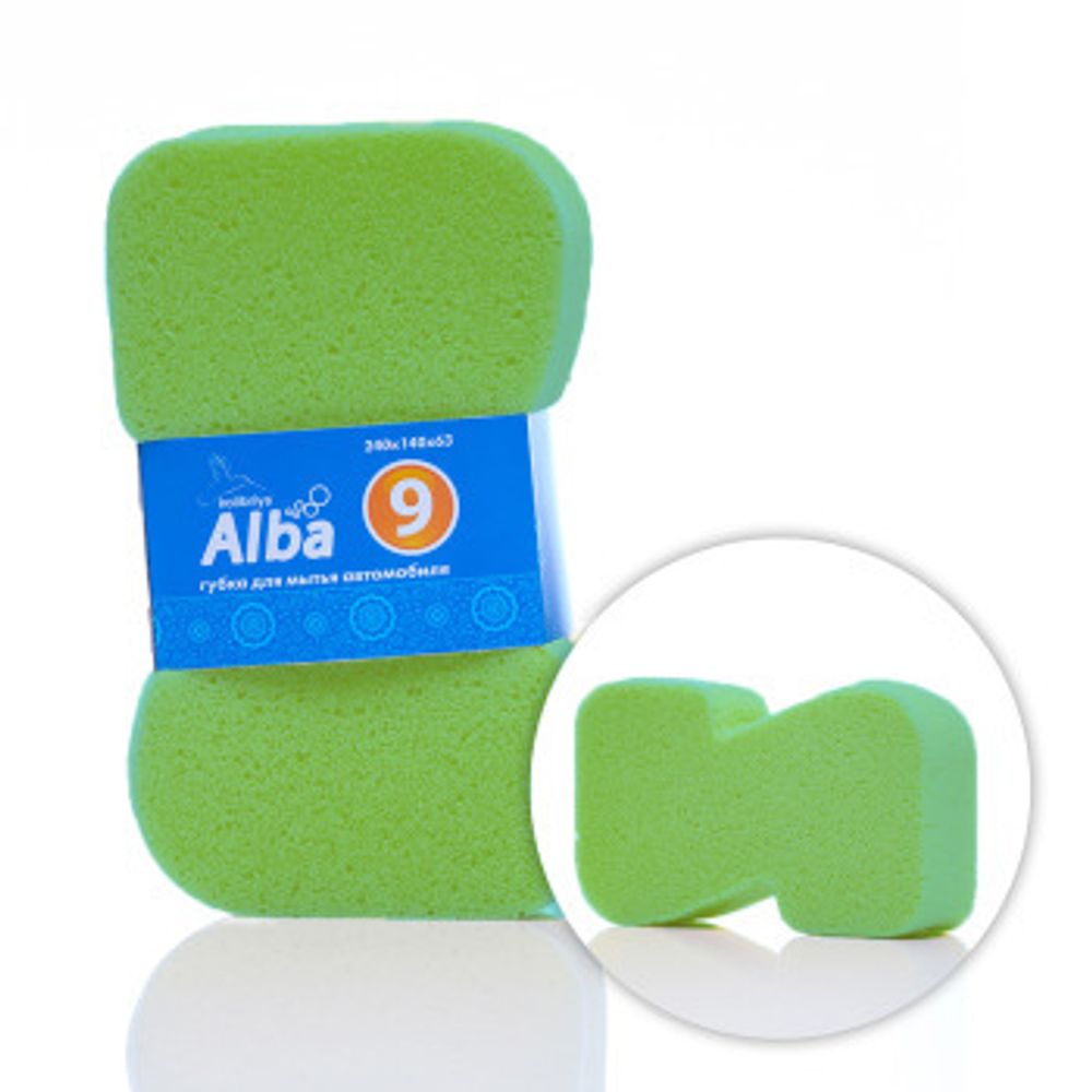Губка для мытья а/м "Kolibriya" Alba- 9 Фигурная Z, 240х140х63мм (пористая) (1/100)
