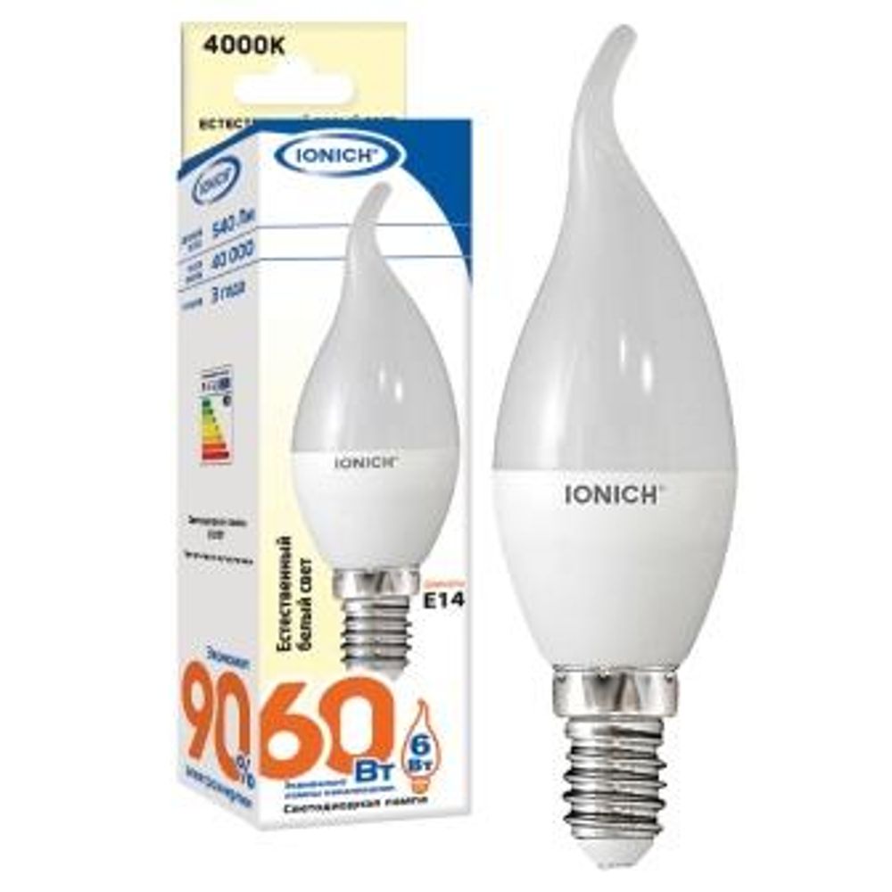 Лампа светодиодная IONICH декоративного освещения "свеча на ветру" ILED-SMD2835-CW37-6Вт-540Лм-230В-