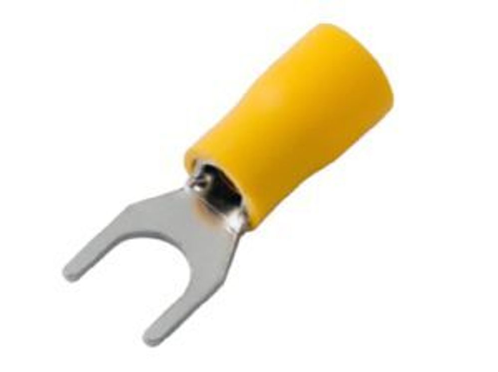 Наконечник вилочный изолированный (НВИ - 6.5 мм) 4-6 мм² REXANT предназначен для создания качественного подключения электрооборудования, которое при необходимости возможно разъединять без полного откручивания крепежного соединения, всего лишь ослабив винтовую фиксацию. Такая клемма используется для оконцовывания многожильных медных проводов при монтаже мобильных электрических контактных соединений на подвижном составе (автомобиле-, вагоно-, самолето- и судостроении) или в других местах, где важна надежность соединения (к примеру, телефонное или климатическое оборудование).