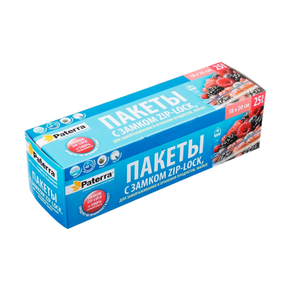 Пакеты для хранения и замораживания с замком ZIP-LOCK PATERRA 18х20 см, 1 л, 40 мкм в футляре
