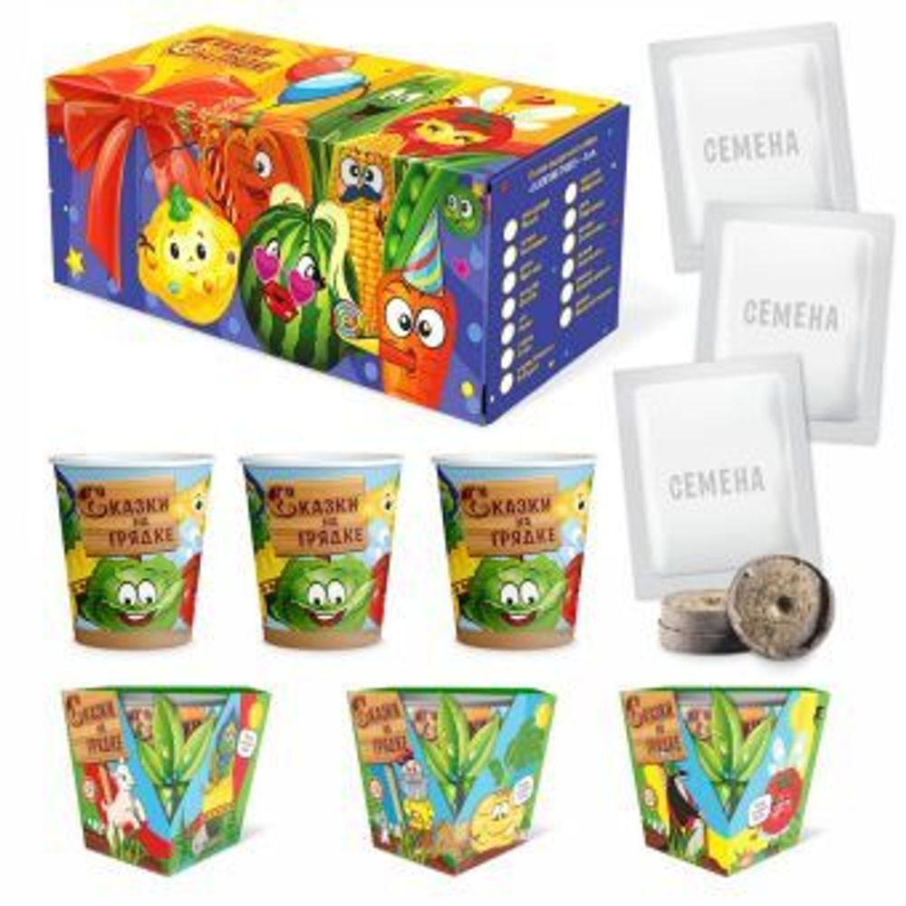 Состав: стаканчик для выращивания - 3 шт, семена АГРОУСПЕХ - 3 культуры в ассортименте, торфяная таблетка - 3 шт, инструкция внутри коробки, табличка для маркировки рассады - 3 шт, игра-лабиринт для детей, закладка для увлекательных книг - 1 шт.