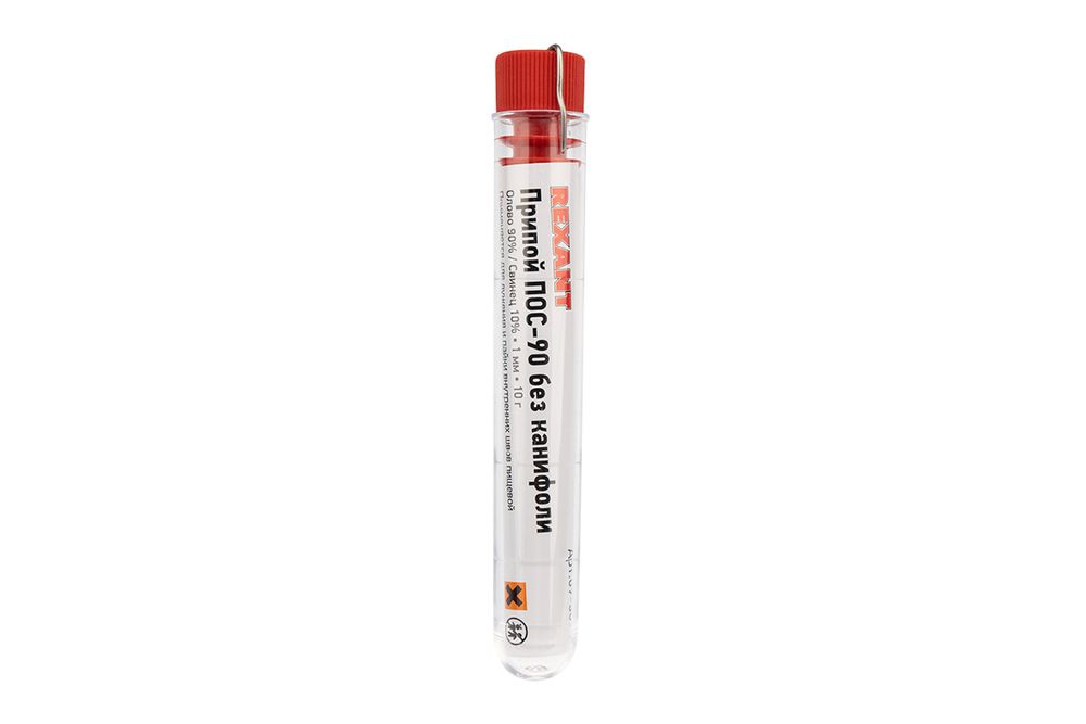 Припой без канифоли ПОС-90 REXANT, 10 г, Ø1.0 мм (09-3094)