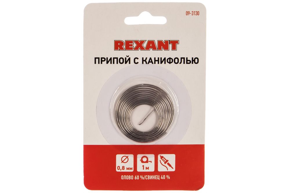 Припой с канифолью REXANT, 1 м, Ø0.8 мм, спираль (09-3130)