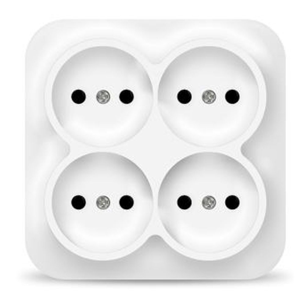 Розетка четырехместная квадратная серия "IONICH", б/з, о/у, 16А, 220В, белая (еврослот) (HU1923)