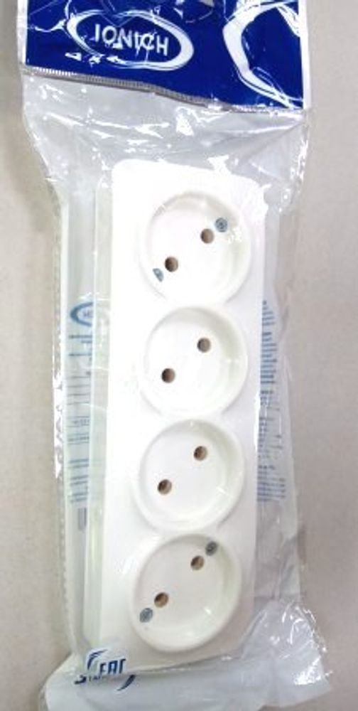 Розетка четырехместная серия "IONICH", б/з, о/у, 16А, 220В, белая (еврослот) (HU1920)