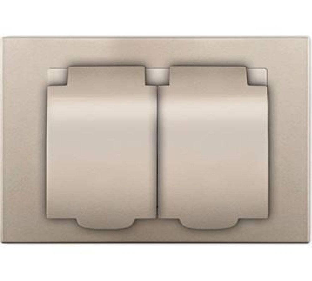 Розетка двухместная "UNIVersal" серия "Афина" с/з с крышкой, с/у, 16А, 220В, шампань (еврослот) (HU2