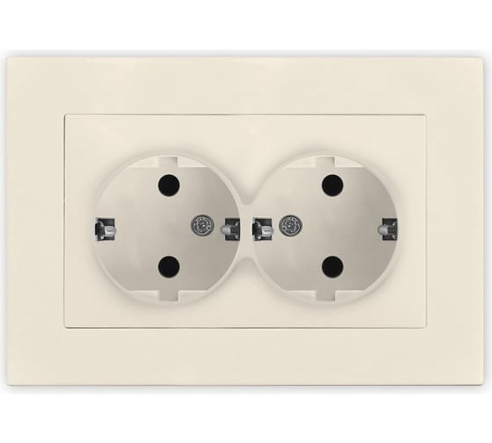 Двухместная розетка слоновая кость UNIVersal серия Афина А0128-I с заземляющими контактами, что значительно повышает уровень электробезопасности данного изделия.