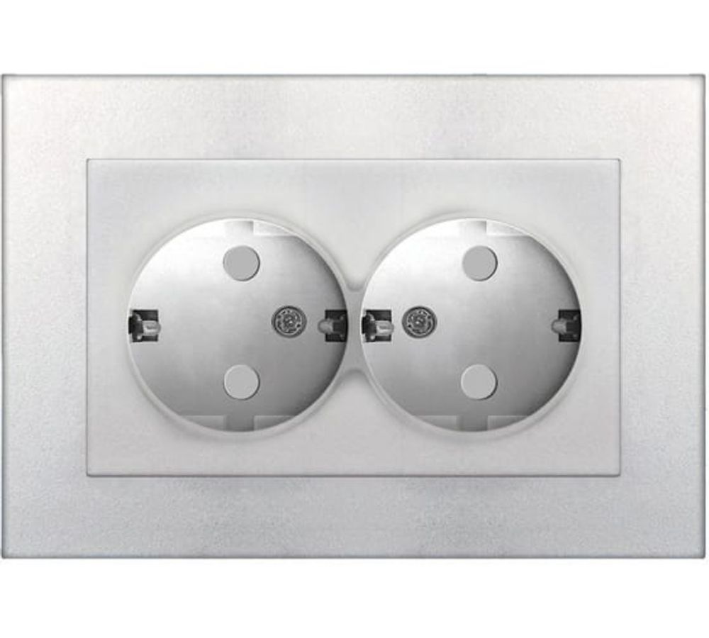 Двухместная розетка серебро UNIVersal серия Афина А0050-S оснащена защитными шторками и заземляющими контактами, что значительно повышает уровень электробезопасности данного изделия.