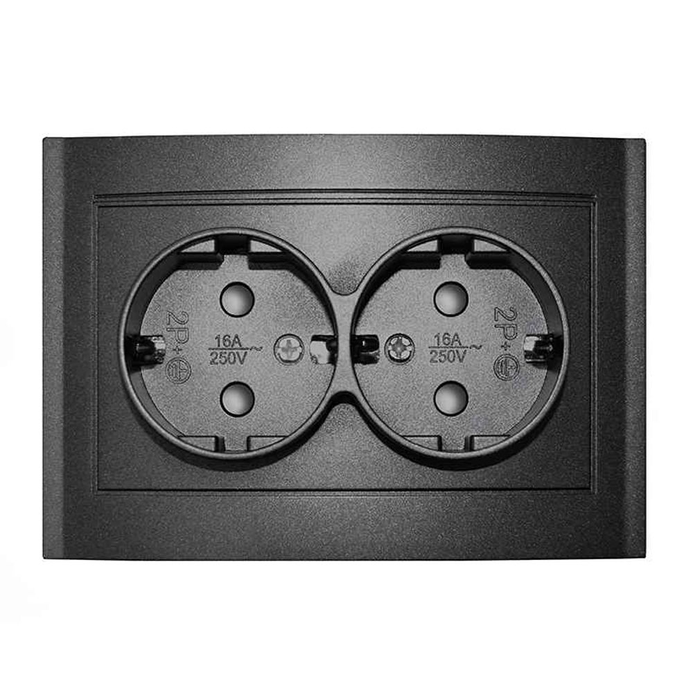 Розетка двухместная UNIVersal серия "Бриллиант" с/з, з/ш, 16А, 220В, Графит (1/100)