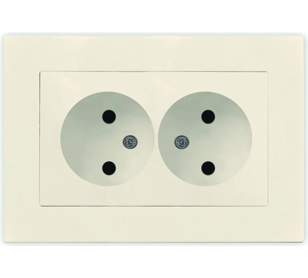 Двухместная розетка UNIVersal серия афина, без заземления, скрытой установки, 16а, 220в, слоновая кость ivory, еврослот A0102-I проста в установке, широко используется для бытового использования - установки дома, в офисе и т. д.