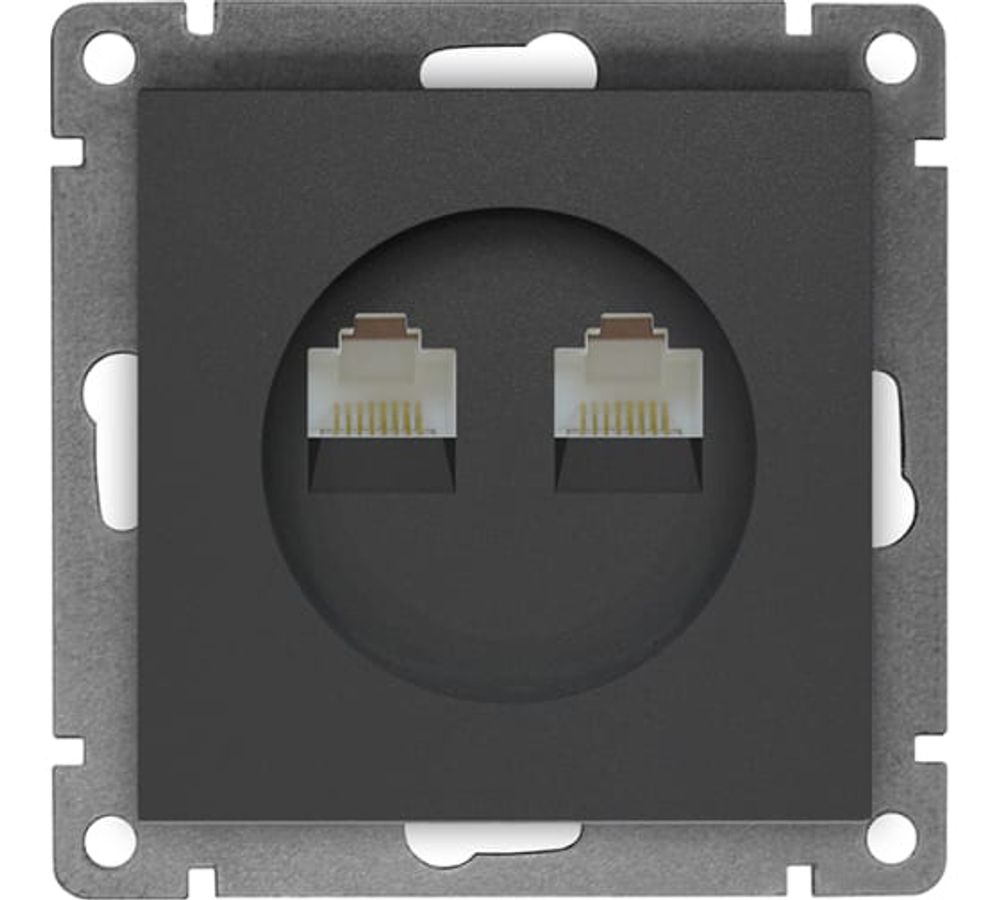 Компьютерная двухместная розетка, графит UNIVersal серия Афина А1086-Gr подходит для монтажа в офисах и квартирах. Служит для подключения компьютера или ноутбука к локальной сети. Изделие имеет классический дизайн, корпус выполнен из пластика.