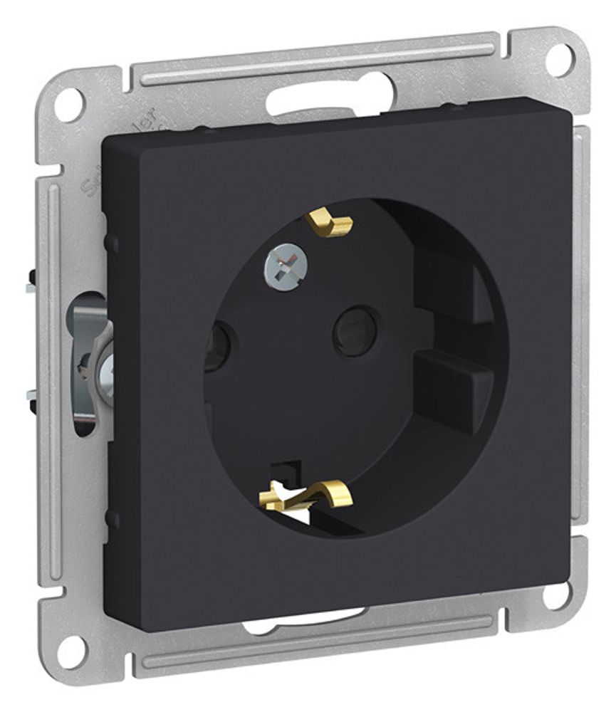 Розетка одноместная Systeme Electric AtlasDesign Карбон с/з со шторками 16А