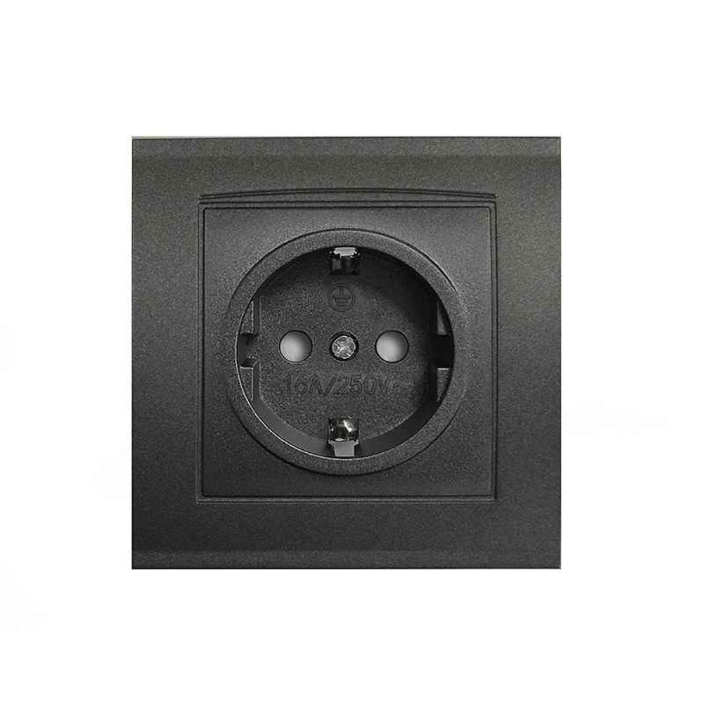Розетка одноместная UNIVersal серия "Бриллиант" с/з, з/ш, 16А, 220В, Графит (1/100)