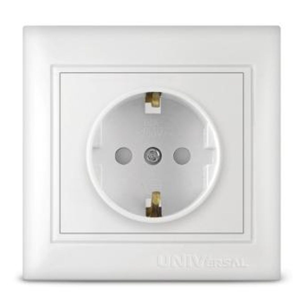 Розетка одноместная "UNIVersal" серия "Севиль" с/з, с/у, з/ш, 16А, 220В, белая (еврослот) (HU2044)