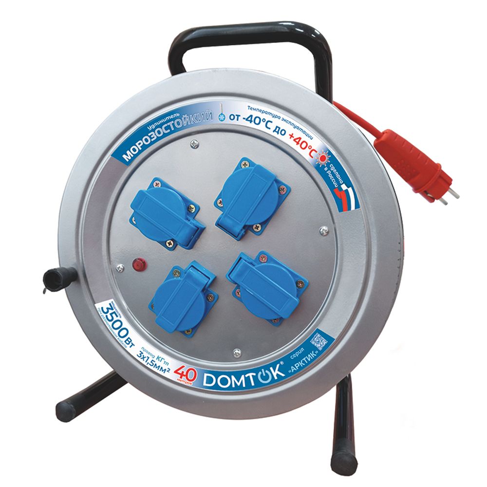 Силовой удлинитель на мет. катушке DOMTOK АРКТИК КГ 3*1,5, 3,5 кВт, IP-44, з/к, 40м (1/1)