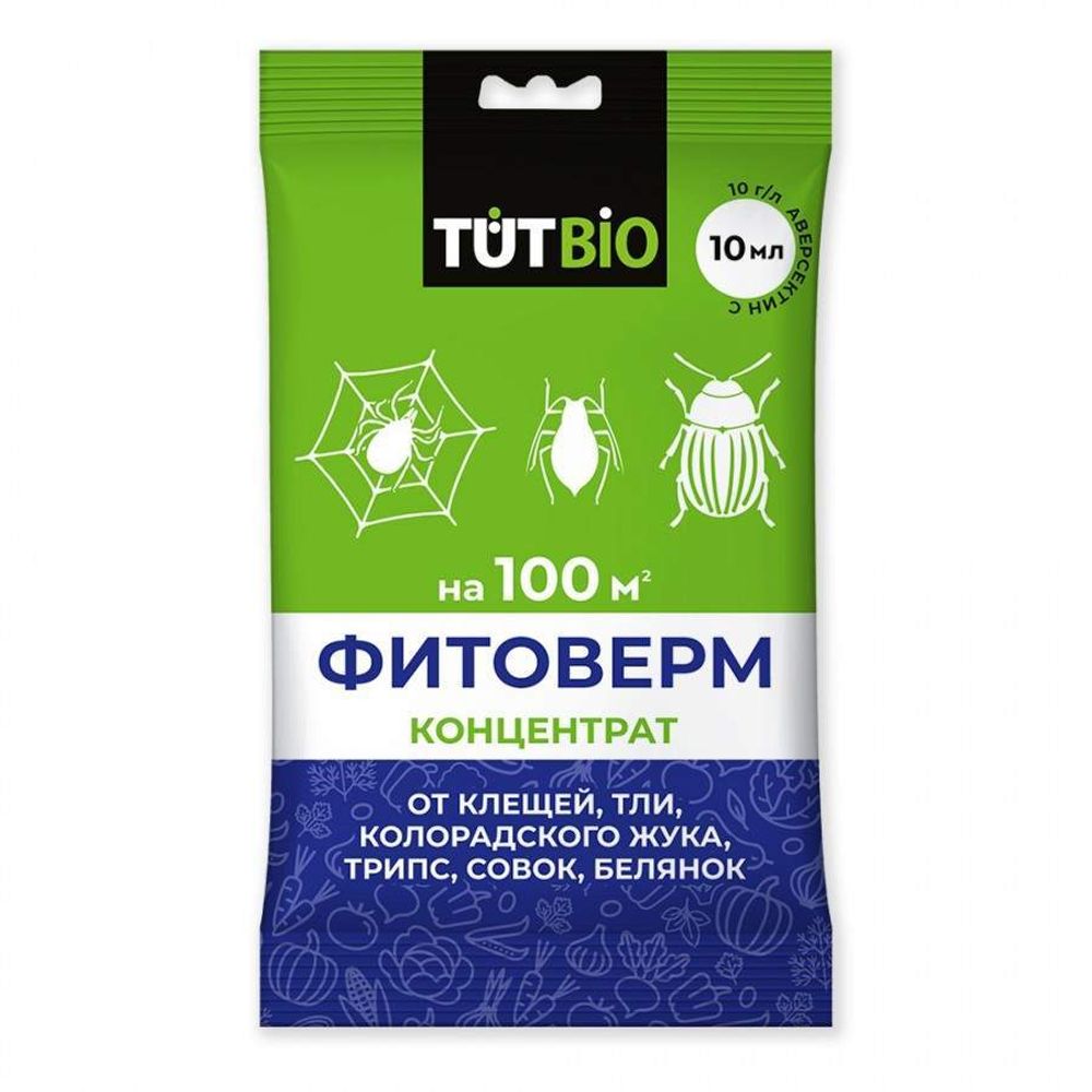 Средство от паутинных клещей, трипс, тли и др. вред. ФИТОВЕРМ (ПАКЕТ) концентр 1% 10мл (50) ТУТ БИО