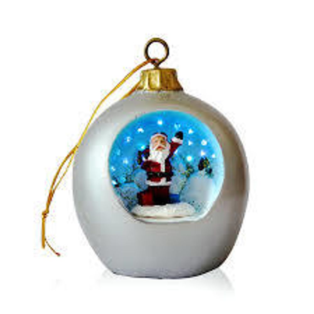 Шар со светодиодами на батарейках. Мощность 0,2Вт. Тип лампы: LED. Питание: 3хLR44. Материал корпуса: пластик. Размер, мм: 115 х 85. Вес, кг: 0,2. Украшение в виде ёлочного шара Дед Мороз выполнен из долговечного и экологичного материала – искусственного камня. Внутри шара новогодняя сценка подсвечена разноцветными светодиодами. Этот прекрасный подарок приведёт Новый год не только в дом, но и в офис, поможет украсить витрины и прилавки магазинов.