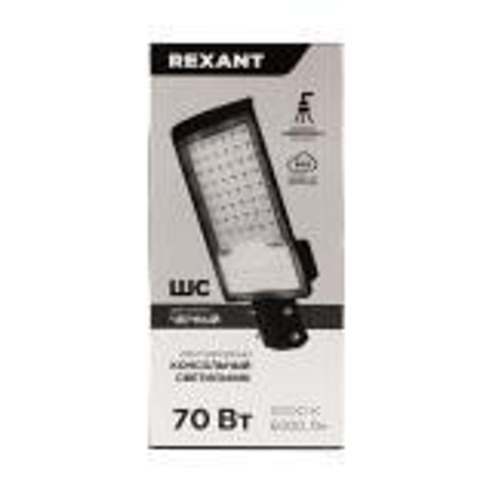 Светодиодный консольный светильник REXANT подходит для освещения автостоянок, площадей, парков, коттеджных поселков, железнодорожных платформ, станций, мостов, территорий дворов, школ, пешеходных и велодорожек.