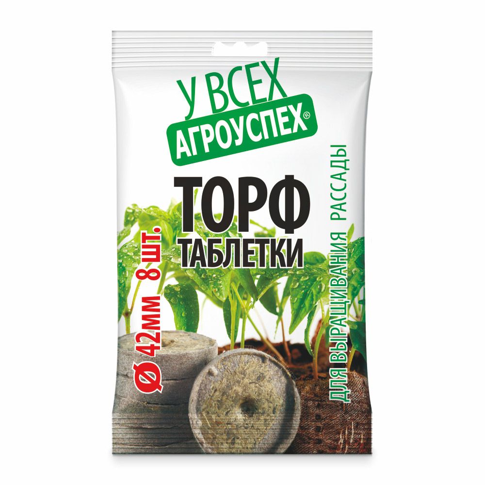 Таблетки торфянные в пакете 42мм 8шт пакет (40) Агроуспех