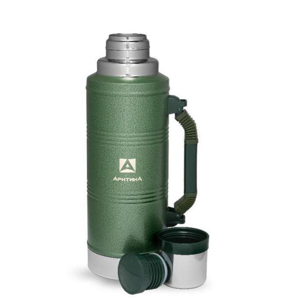 Наружное покрытие из молотковой эмали зеленого «защитного» цвета противостоит сколам и ударам, цвет подчеркивает изначальное полевое предназначение термоса АРКТИКА 106-2200Р.
