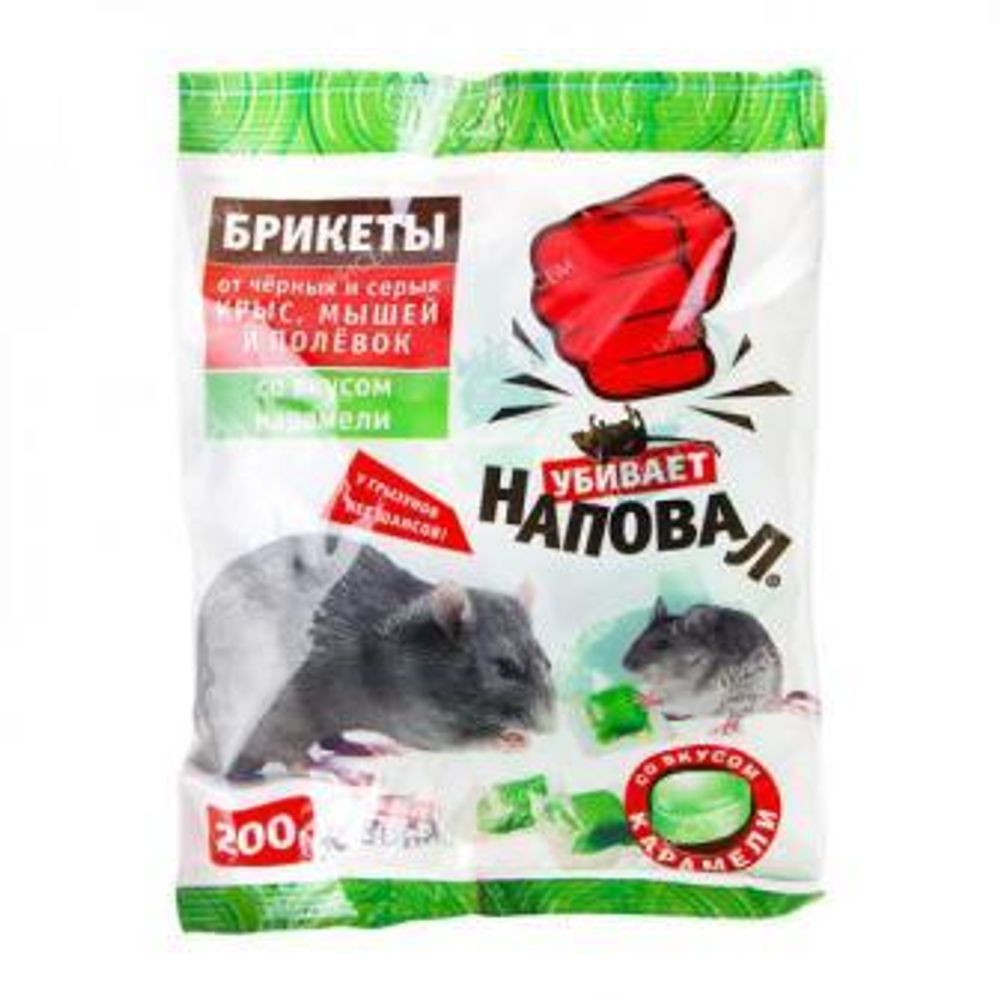 Тесто-брикеты Наповал родентицид от крыс и мышей со вкусом карамели пак. 200 г(1/50)