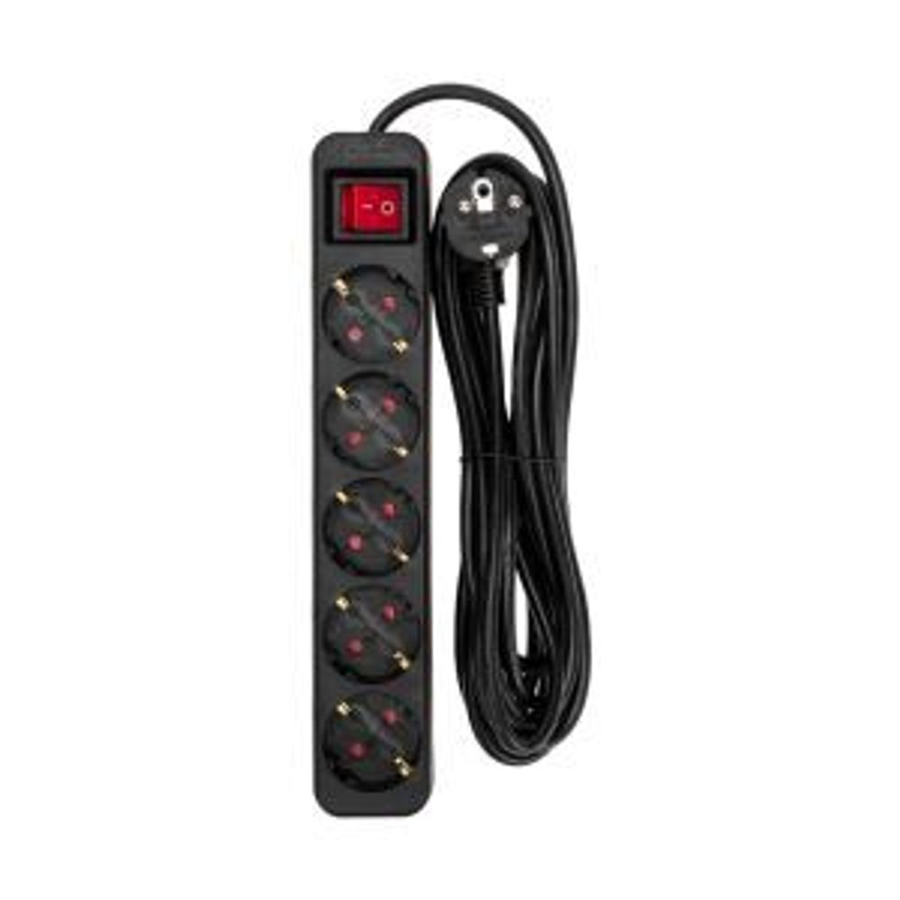 Удлинитель STANDARD 5 гнезд, 5м, 3х1,0мм², с/з, с выключателем, черный REXANT