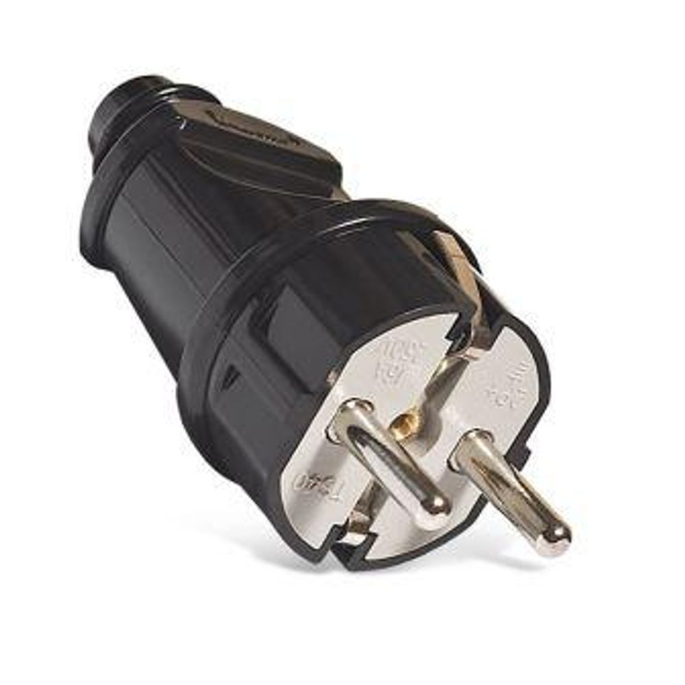 Прямая вилка с заземлением, черная 16А 250В служит для соединения со шнурами
