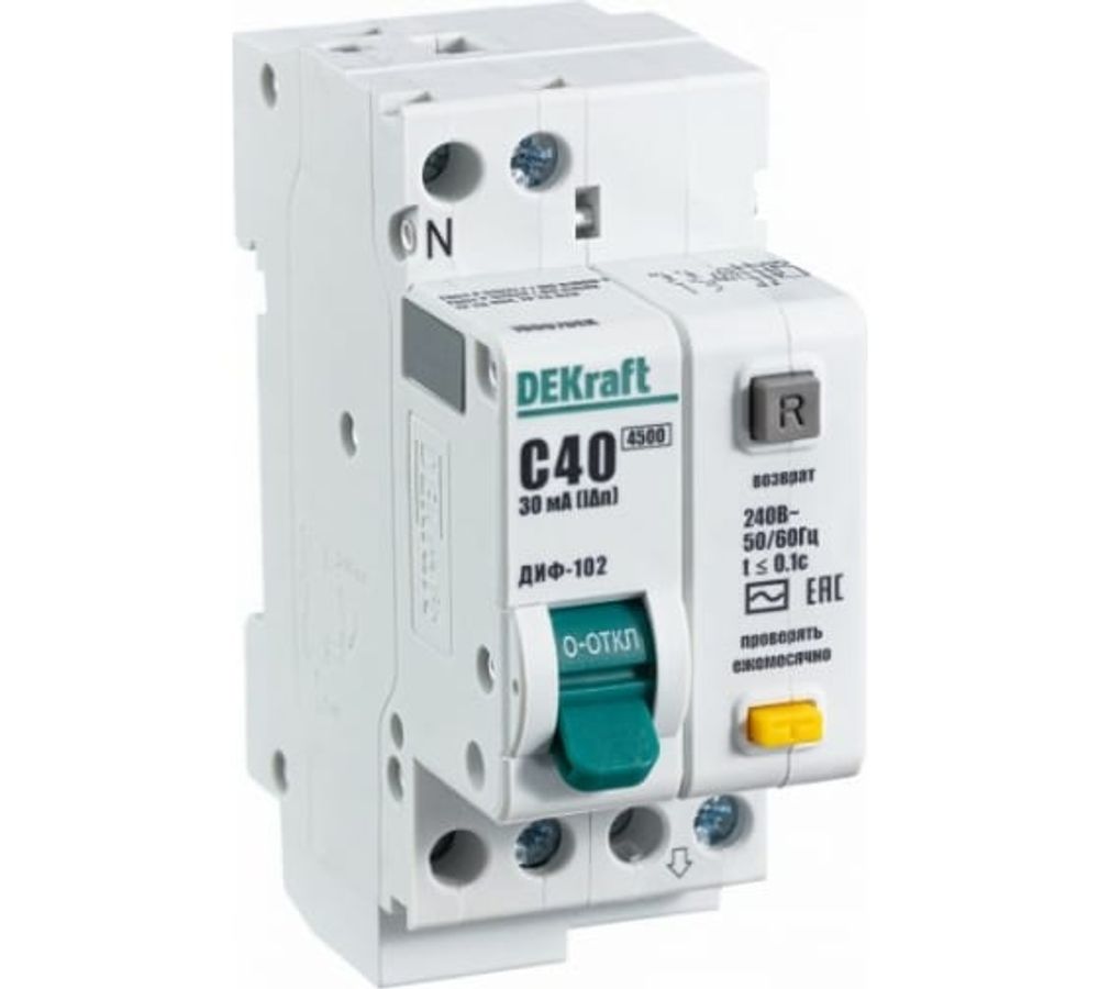 Выключатель автоматический дифференциальный DEKraft 1P+N 40А 30мА C ДИФ-102 4,5кА