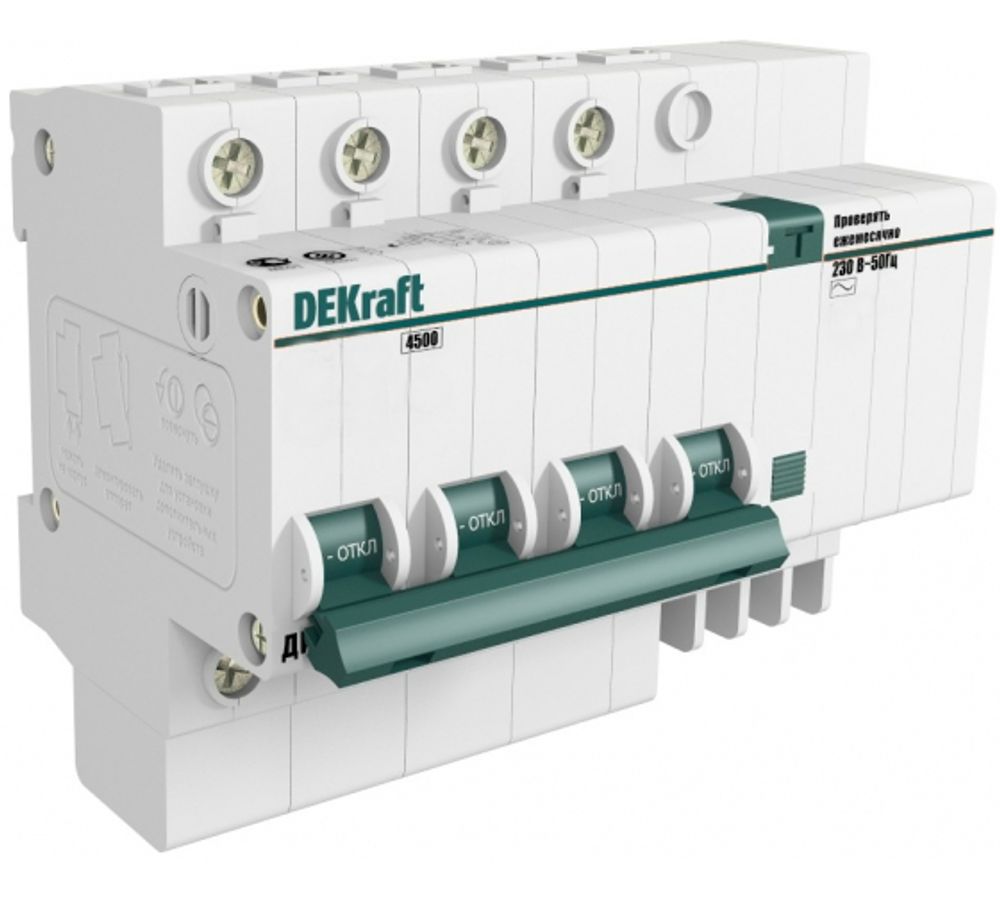 Выключатель автоматический дифференциальный DEKraft 4Р 50А 30мА C ДИФ-101 4,5кА