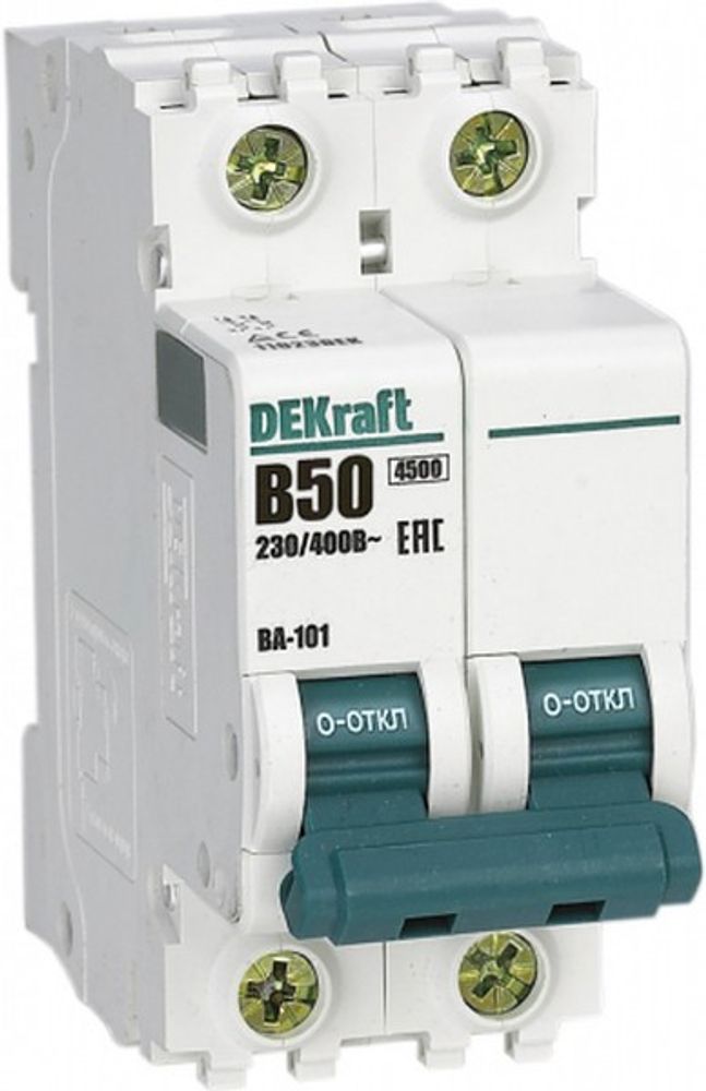 Выключатель автоматический модульный DEKraft 2Р 50А B 4,5кА ВА-101