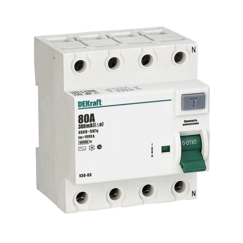 Выключатель дифференциального тока DEKraft 4P 80A 30мА AC 6кА УЗО-03