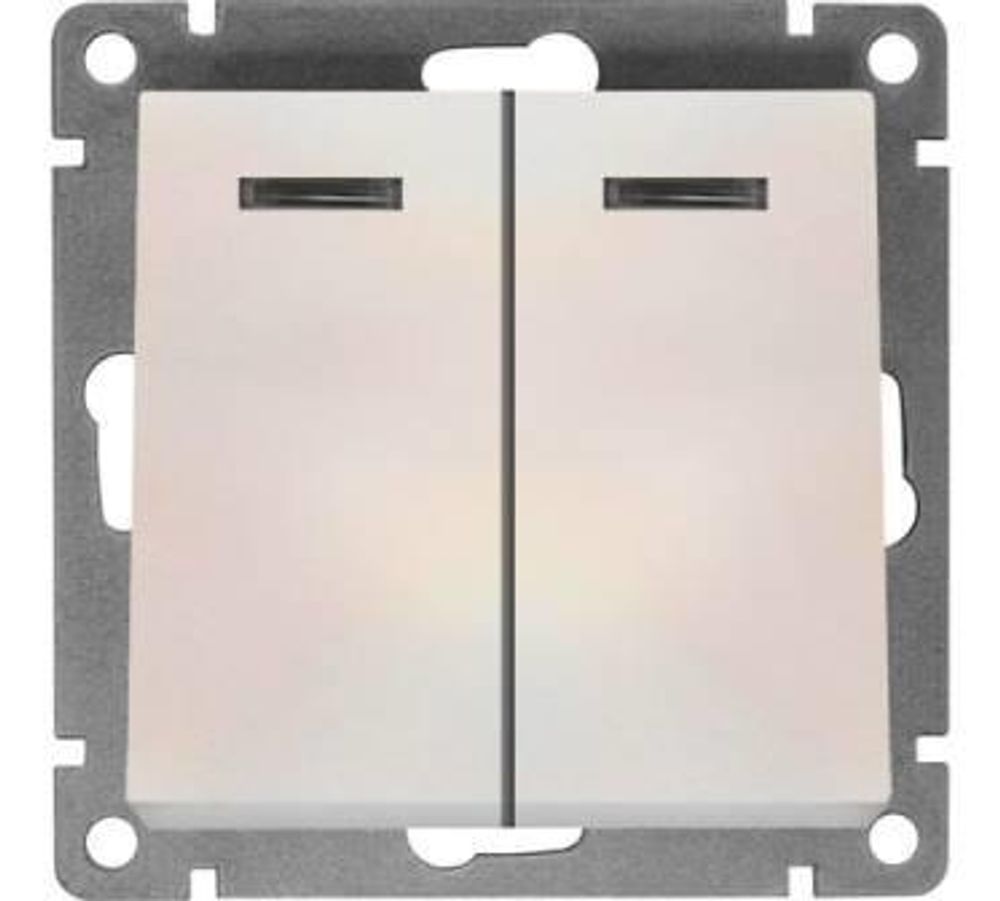 Выключатель двухклавишный с подсветкой "UNIVersal" серия "Афина", с/у, 10А, 220В, жемчуг (HU2331)