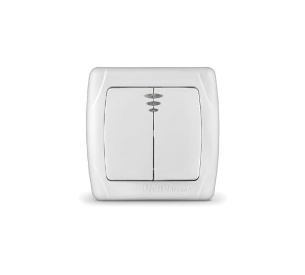 Выключатель двухклавишный с подсветкой "UNIVersal" серия "Маргарита", с/у, 10А, 220В, белый (евросло