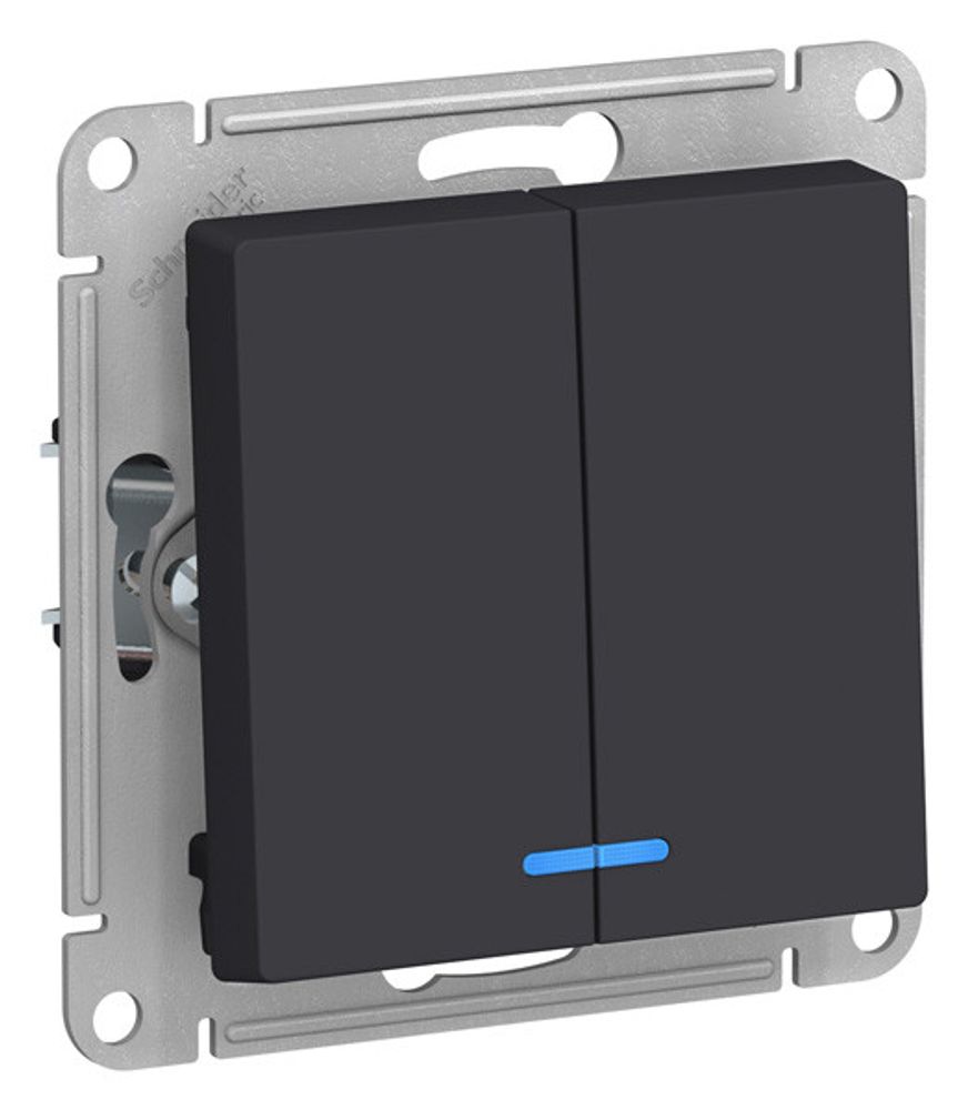 Выключатель двухклавишный Systeme Electric AtlasDesign Карбон с подсветкой 10А