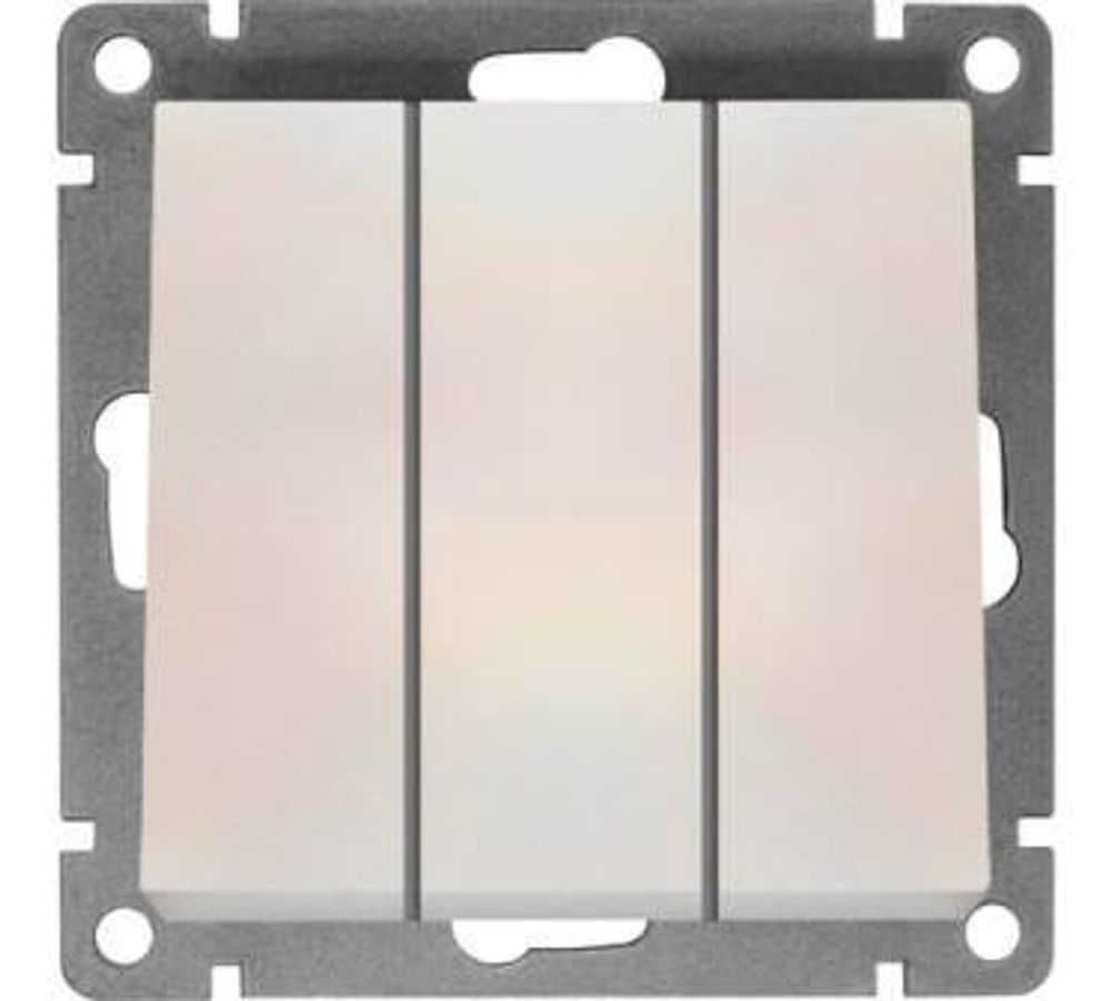 Выключатель трехклавишный "UNIVersal" серия "Афина", с/у, 10А, 220В, жемчуг (еврослот) (HU2331)